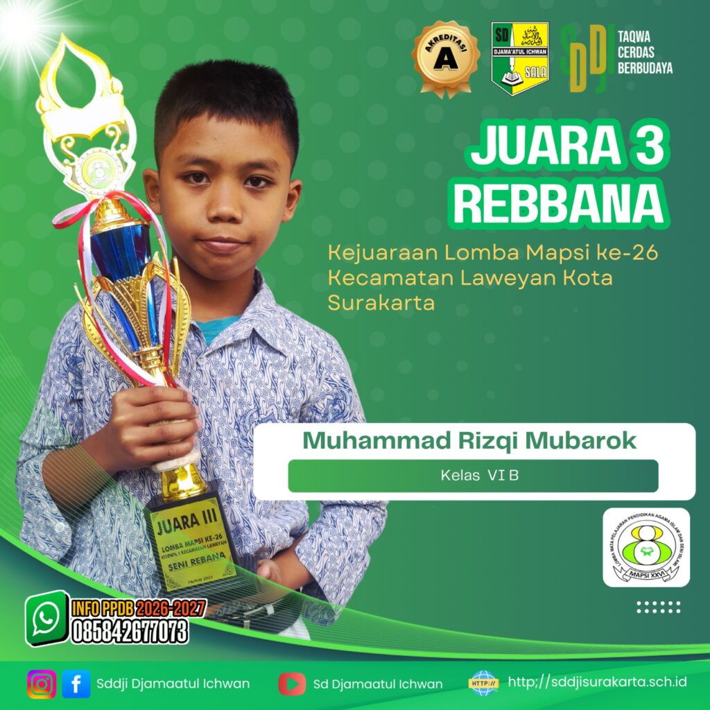 #SDDjamaatulIchwan #JuaraRebana #Mapsi26 #KotaSurakarta #Laweyan #PrestasiSiswa #MuhammadRizqiMubarok #SekolahBerprestasi #TaqwaCerdasBerbudaya
