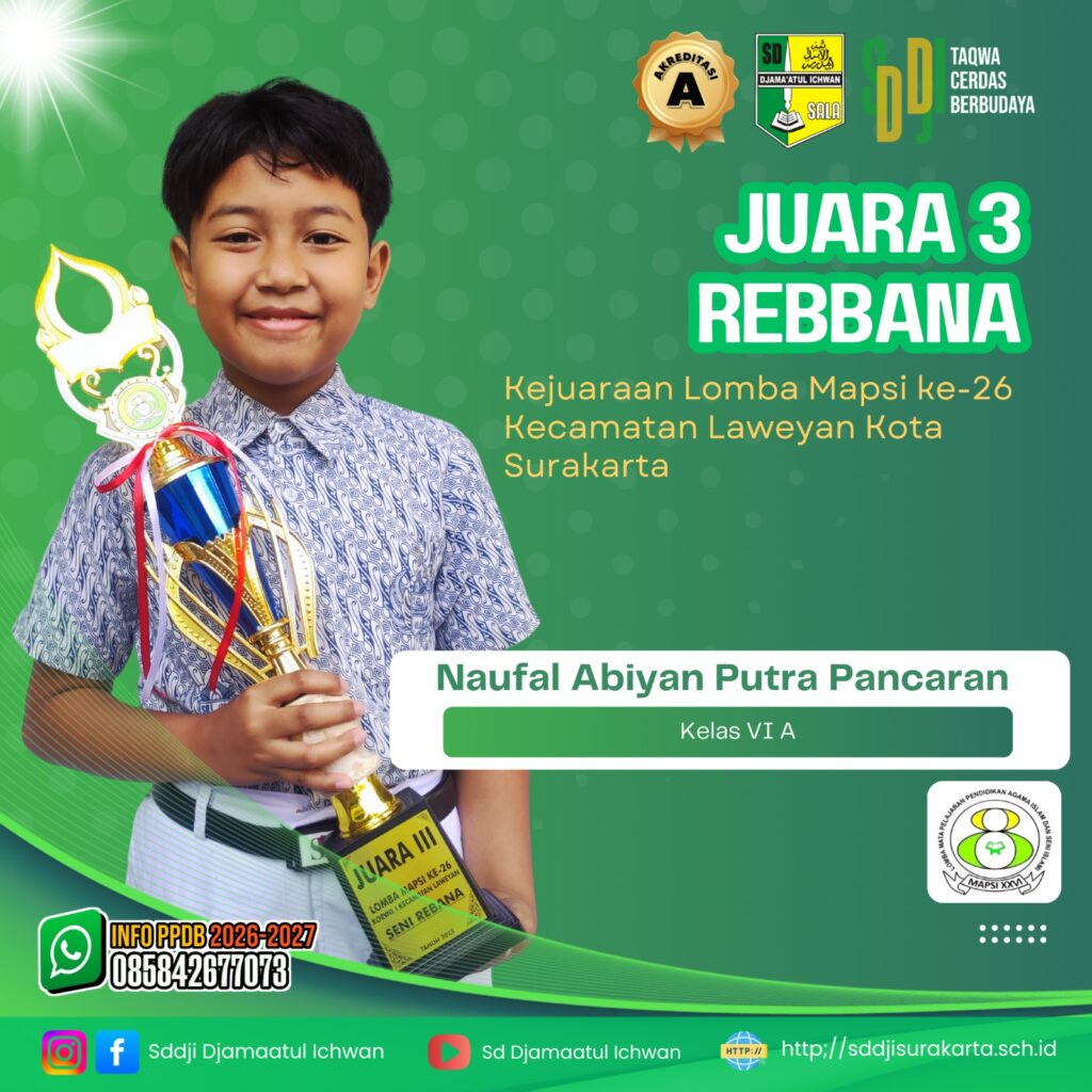 #SDDjamaatulIchwan #JuaraRebana #Mapsi26 #NaufalAbiyan #PrestasiSiswa #SekolahBerakhlak #Surakarta #Laweyan #TaqwaCerdasBerbudaya