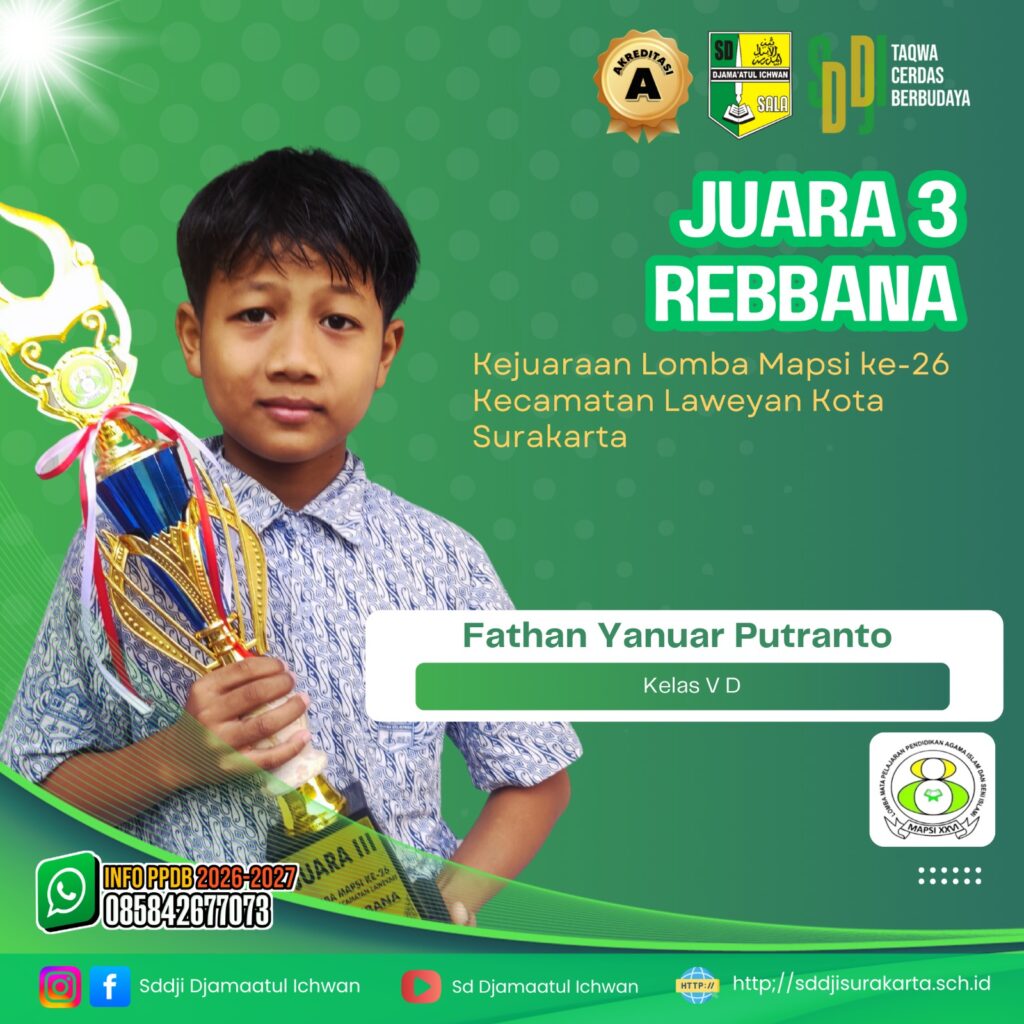 #SDDjamaatulIchwan #JuaraRebana #Mapsi26 #FathanYanuar #PrestasiSiswa #SekolahIslami #Surakarta #Laweyan #TaqwaCerdasBerbudaya