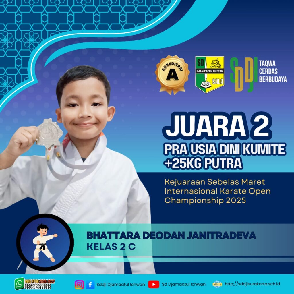 Pesan Motivasi untuk Seluruh Siswa Kisah sukses Bhattara Deodan Janitradeva adalah inspirasi bagi seluruh siswa-siswi SD Djamaatul Ichwan. Ini adalah pengingat bahwa setiap anak memiliki potensi unik dan hebat yang siap diasah. Mari jadikan prestasi Bhattara sebagai pemantik semangat untuk terus mencoba, berani bersaing, dan tidak pernah takut gagal. Teruslah berjuang untuk meraih bintang, baik di kelas maupun di luar kelas!